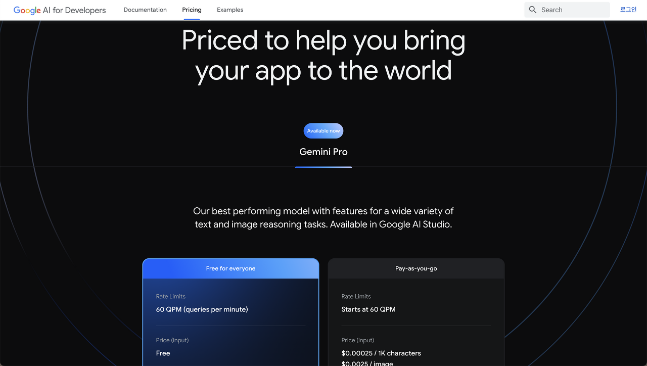 현재 Gemini Pro의 가격 정책은 분당 60쿼리 요청까지 무료입니다.