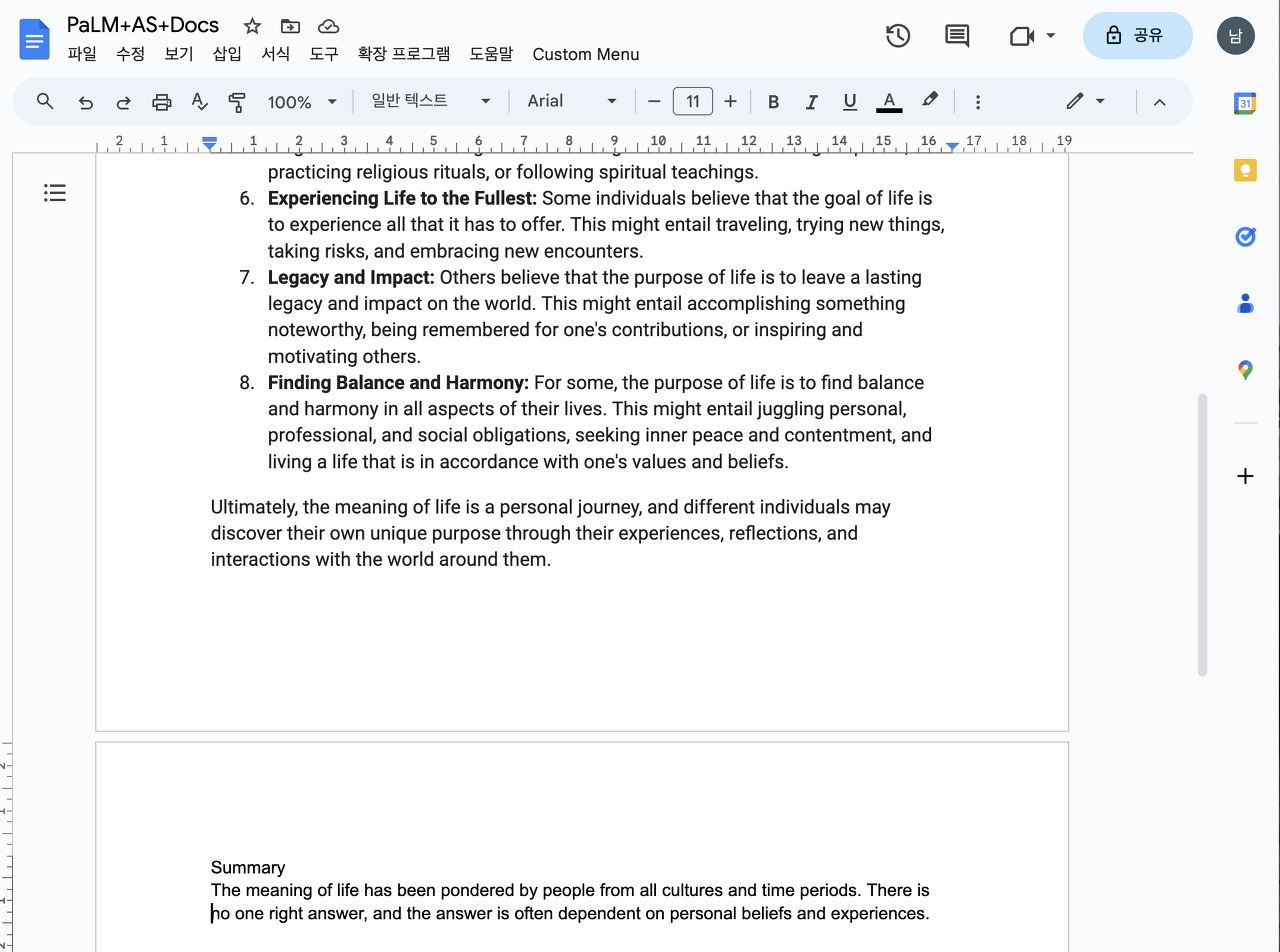 PaLM API는 Google AI Studio에서 제공하는 강력한 언어 모델입니다. 이를 Google Docs와 연동하여 문서의 내용을 요약하는 스크립트를 작성해 보았습니다.